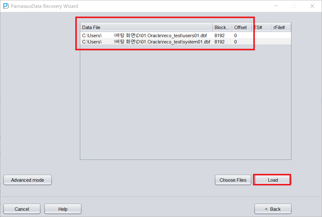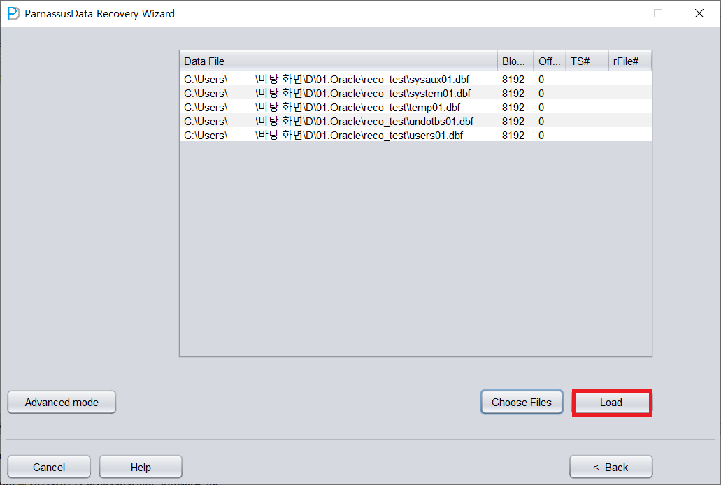 테스트2. 해당 TS 데이터파일 + SYSTEM TS 데이터파일로 복구 시도