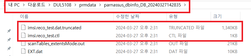 -rw-r--r-- 1 oracle dba 1371177 3월 28 09:15 imsi.reco_test.dat.truncated
