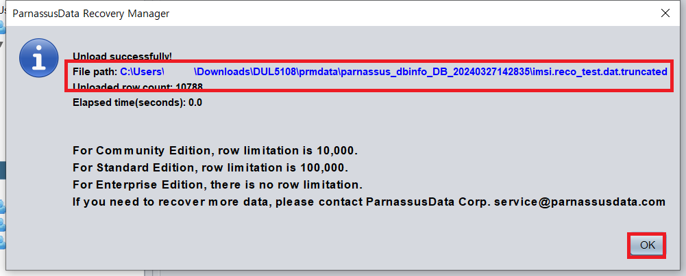 참고로 무료 버전의 경우 1만개 row 까지만 복구가 가능함