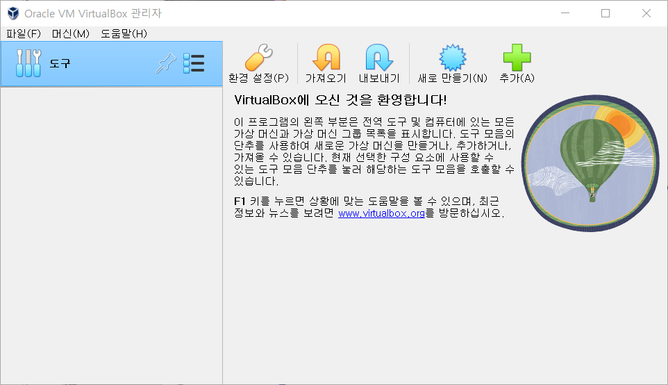 오라클 가상화 프로그램인 버츄얼 박스(Virtual Box) 설치하는 방법을 설명함