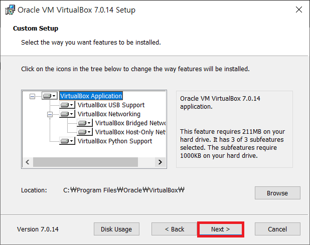다시 버츄얼박스 설치파일 실행