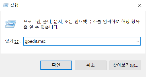 윈도우키 + R로 실행창 열어서 gpedit.msc 실행