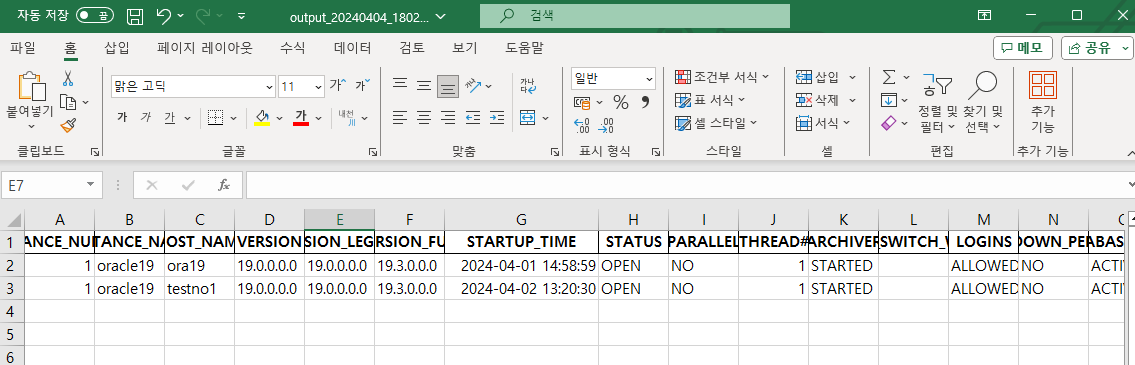 | 오라클 19c 파이썬을 이용해 여러개 DB 데이터 조회 후 엑셀 파일로 저장 (0) | 2024.04.01 |
