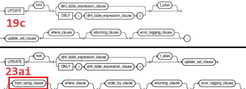 https://docs.oracle.com/en/database/oracle/oracle-database/23/sqlrf/UPDATE.html#SQLRF-GUID-027A462D-379D-4E35-8611-410F3AC8FDA5