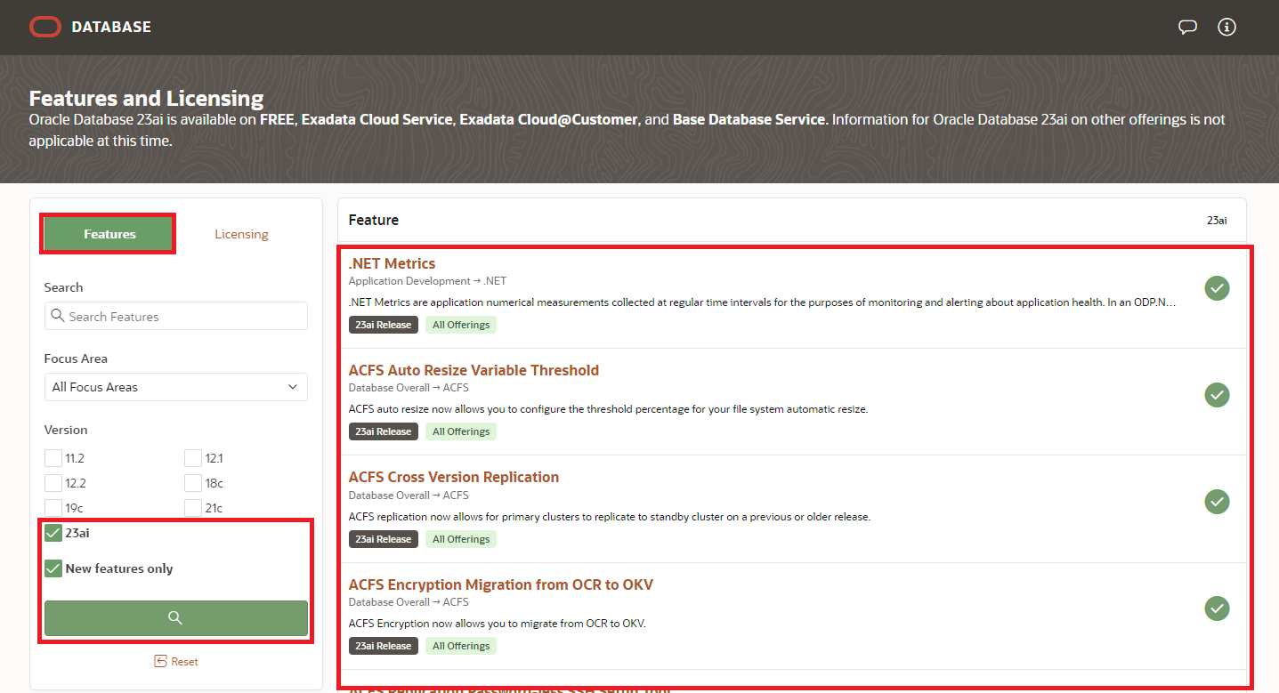 26ai 신기능만 보려면 접속 후 26ai, New features only 체크 후 확인