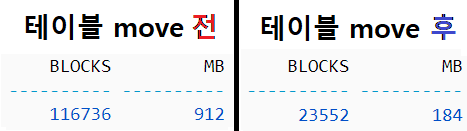 move 후 테이블 블록 조회