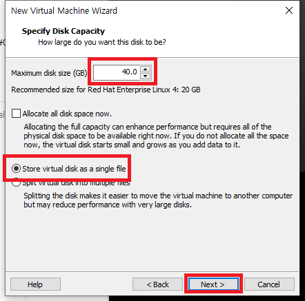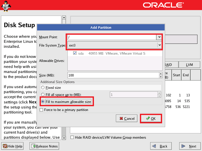 / 에 전체 할당(Fill to maximum allowable size 선택