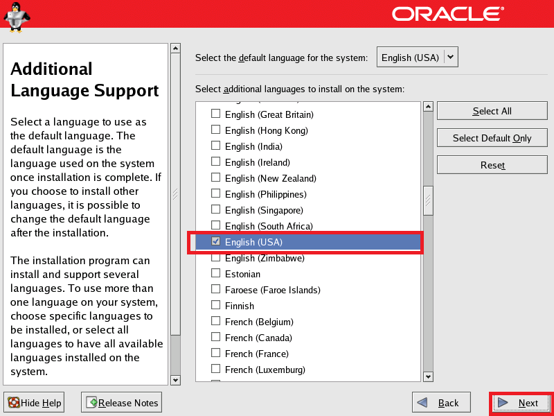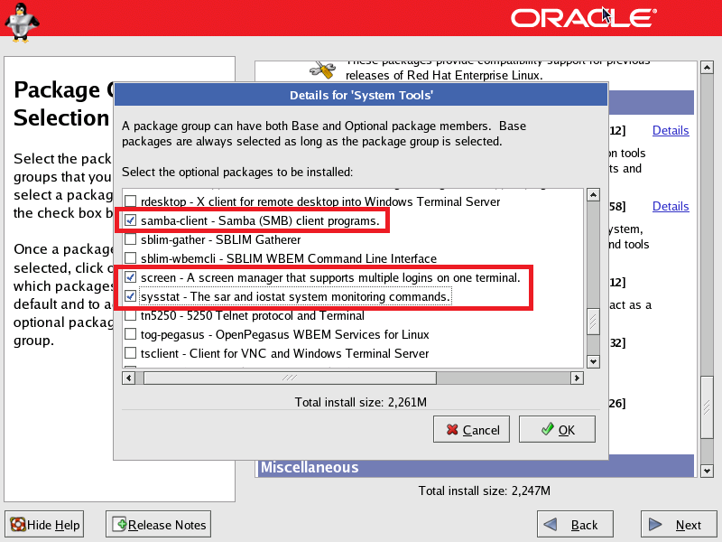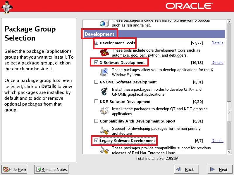 패키지 선택(Development : Development Tools, X Software Development, Legacy Software Development)