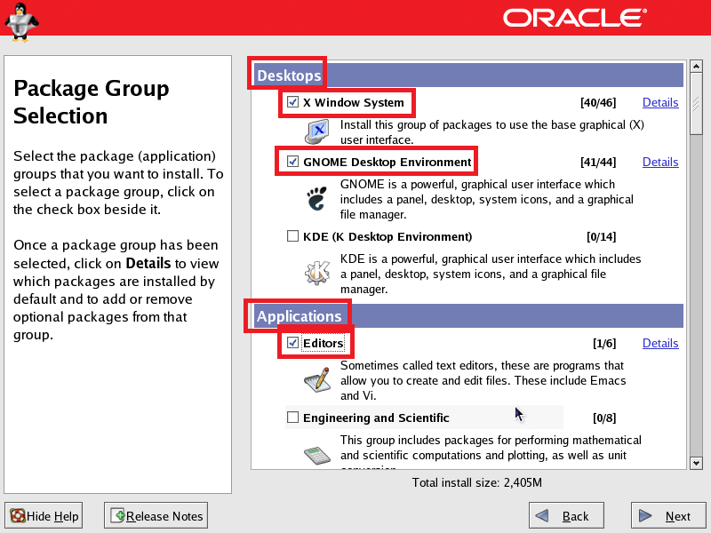 패키지 선택(Desktops : X Windows System, GNOME Desktop Enviroment)