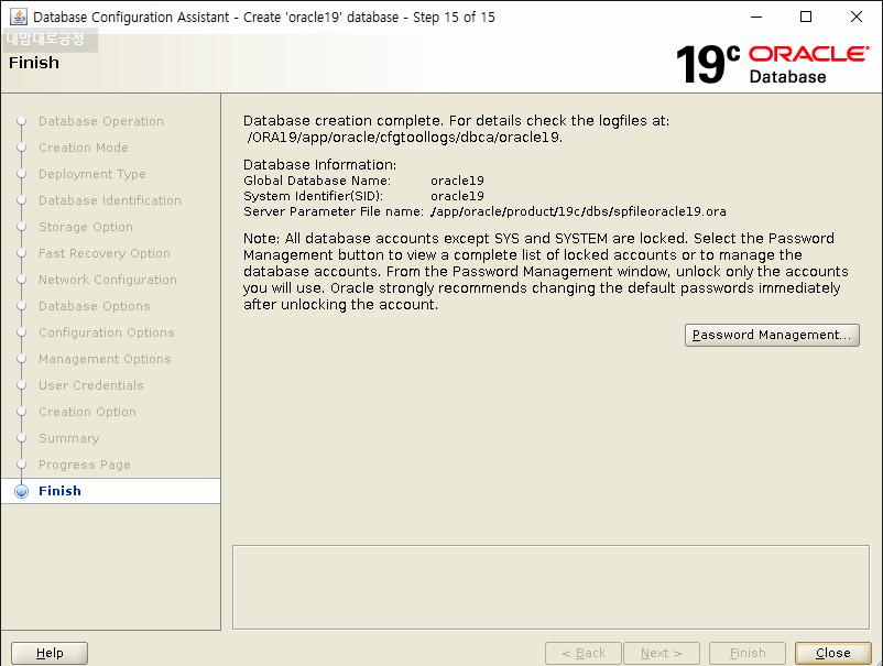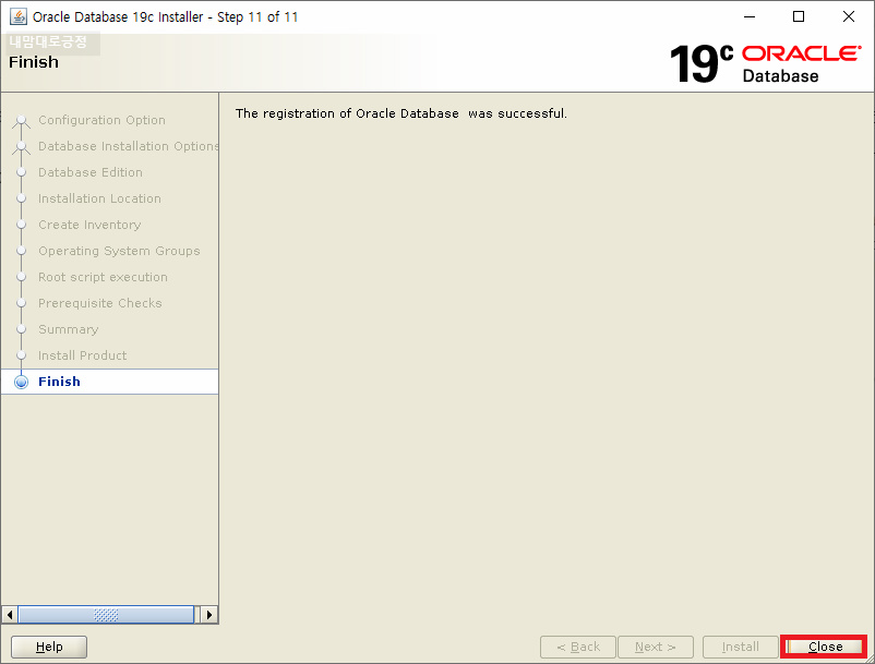 db 소프트웨어(엔진) 설치 완료 Close 선택
