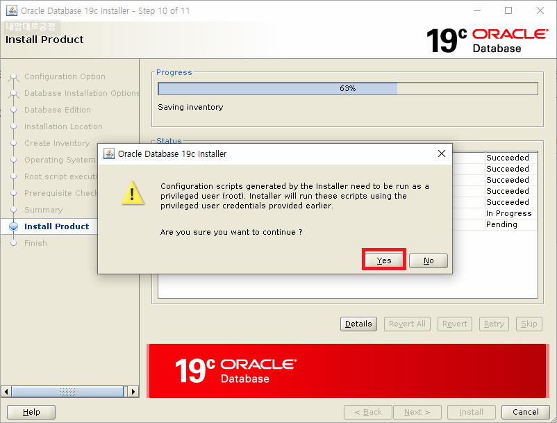 root 스크립트를 돌리기 전 확인차 물어보는 메세지 Yes 선택