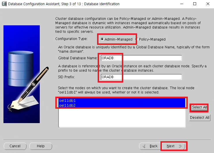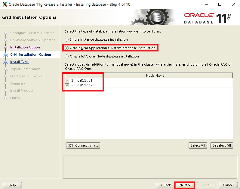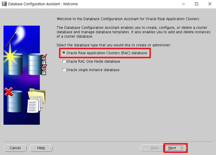 Oracle Real Application Cluster database installation 선택