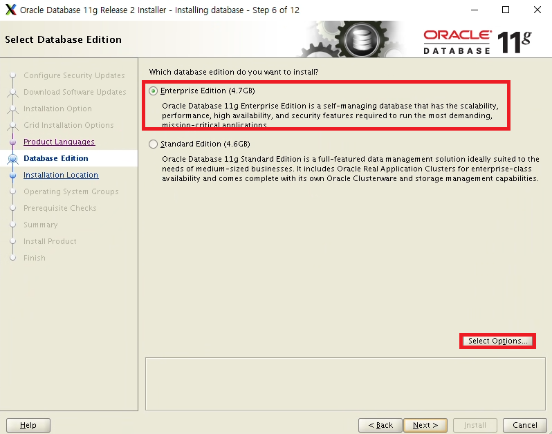 Enterprise Edition 선택 후 Select Options 선택