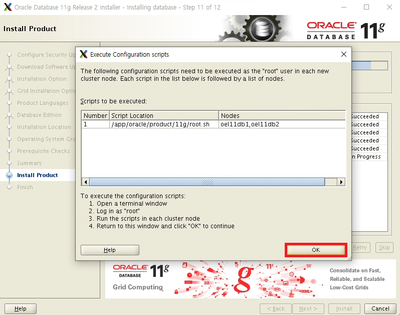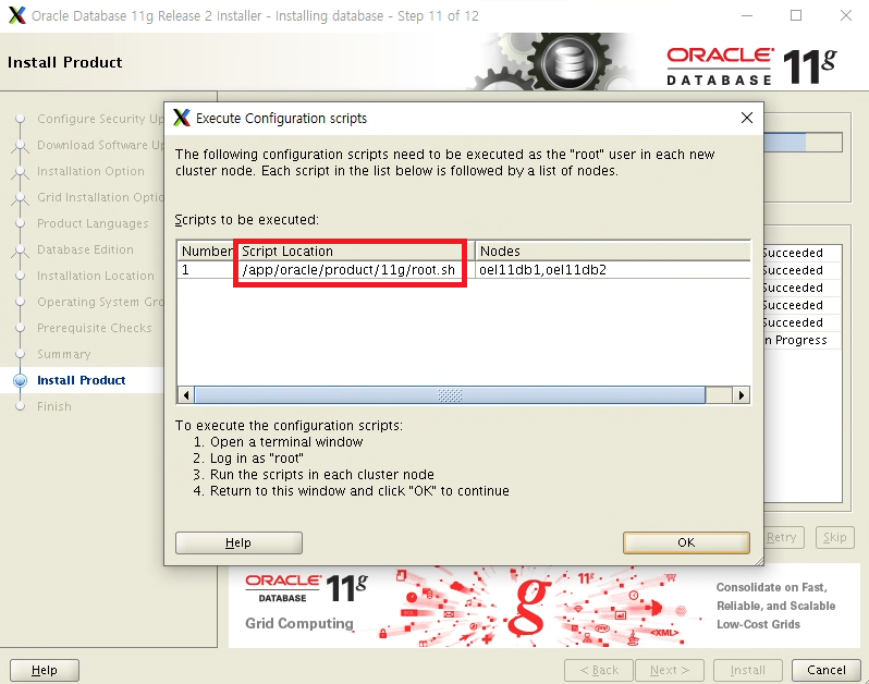 Performing root user operation for Oracle 11g
