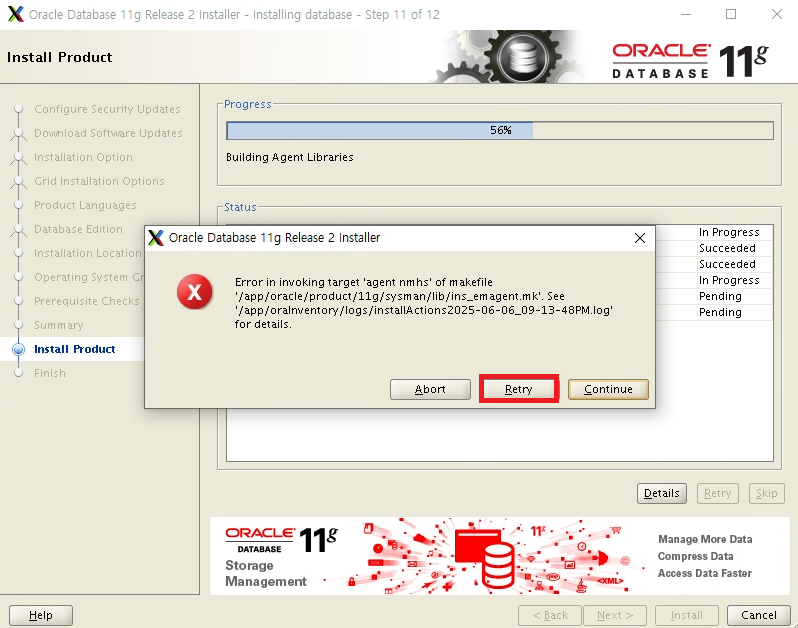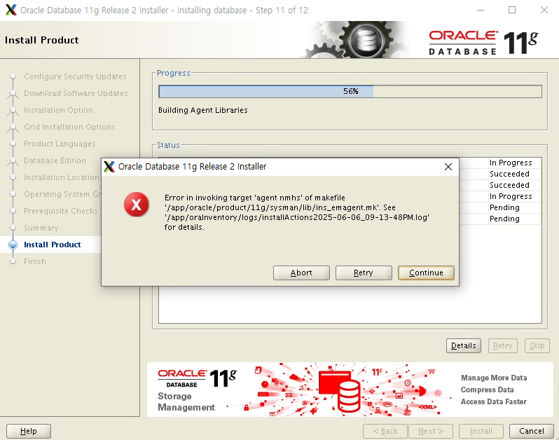 참고 : Error in invoking target ‘agent nmhs’ of makefile ‘$ORACLE_HOME/sysman/lib/ins_emagent.mk’. ( https://positivemh.tistory.com/39 )