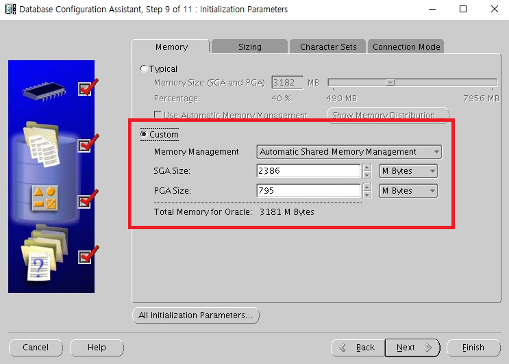 11g부터 raw device 설치를 공식적으로 지원하지 않기때문에 dbca시 스크립트를 생성한뒤 그 스크립트를 실행시키는 방식으로 db를 구성해야함