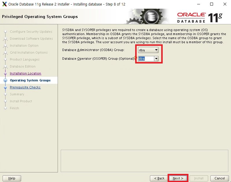 group 는 모두 dba 로 지정