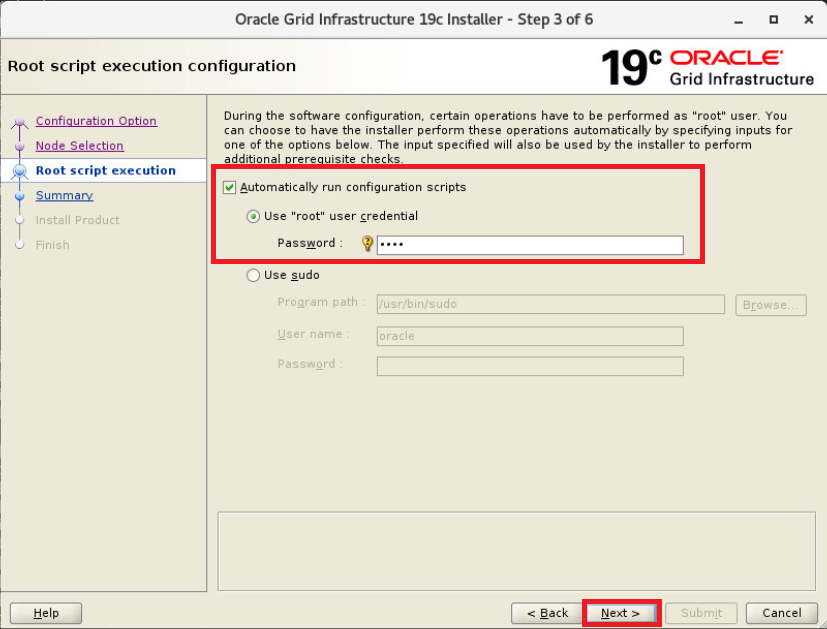 root 스크립트 자동수행 선택
