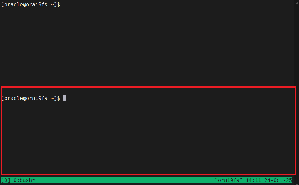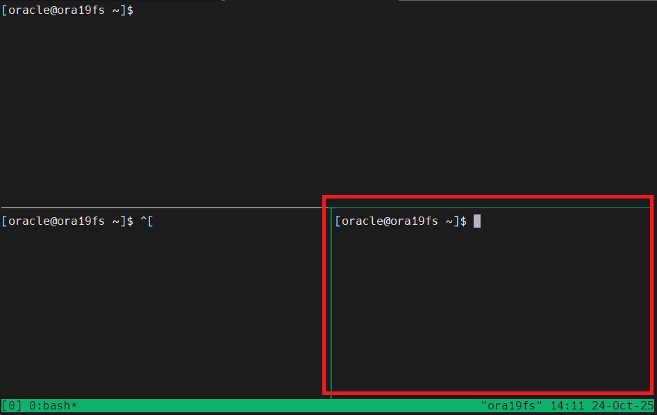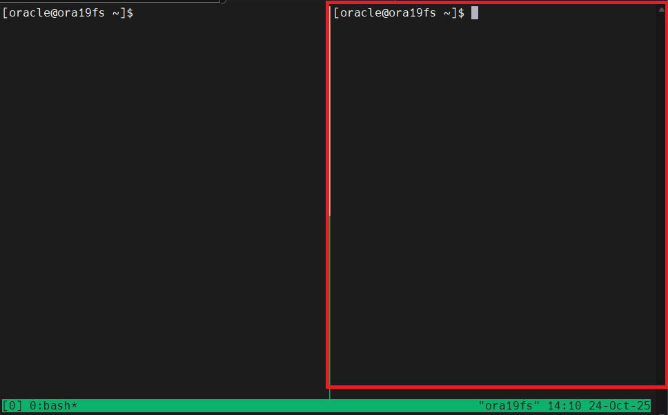[tmuxtest]0:bash- 1:newwin* "ora19fs" 13:38 24-Oct-25
