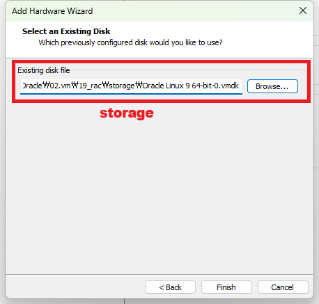공유 스토리지를 사용할것이기 때문에 Use an existing virtual disk 선택