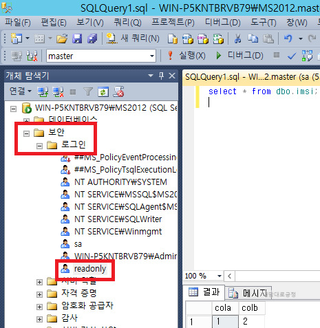 방법 : SQL Server 2012 readonly(읽기전용 유저 생성)