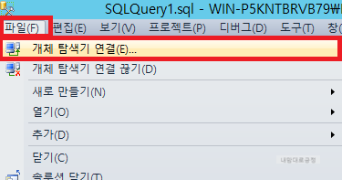 파일 - 개체 탐색기 연결 선택