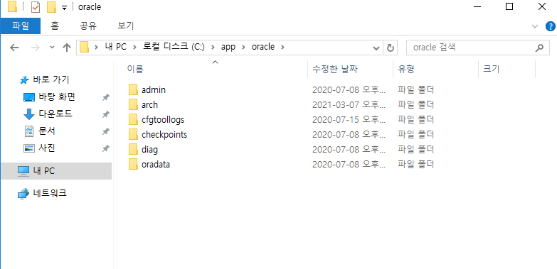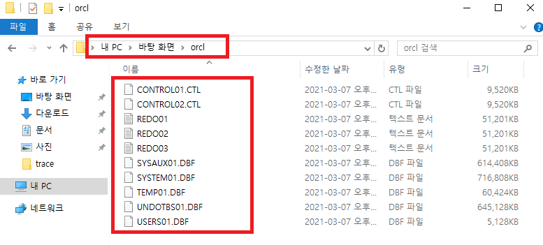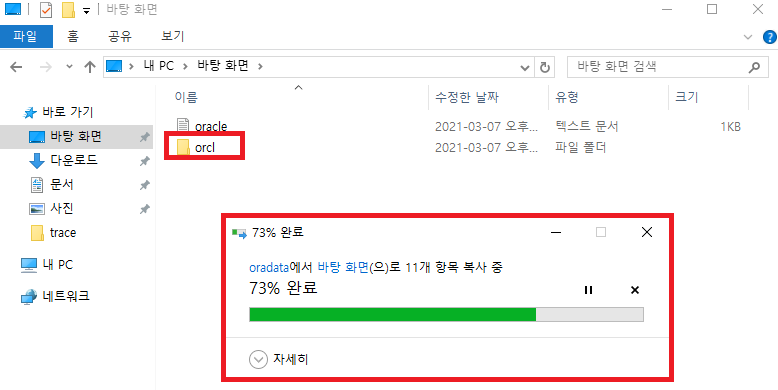 바탕화면\orcl 에 정상적으로 파일이 복사됨