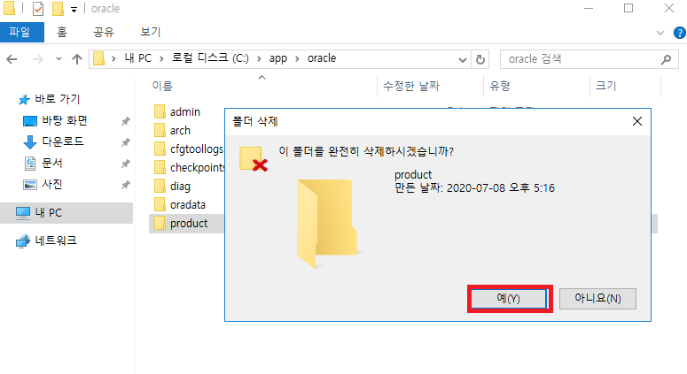 cmd 창 실행 후 오라클 홈경로\deinstall로 이동 후 deinstall 실행
