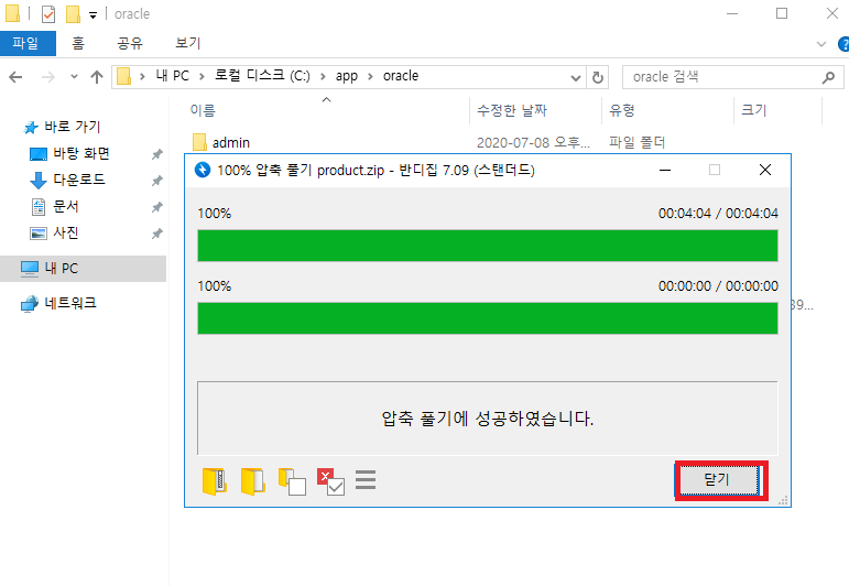 정상적으로 압축해제됨