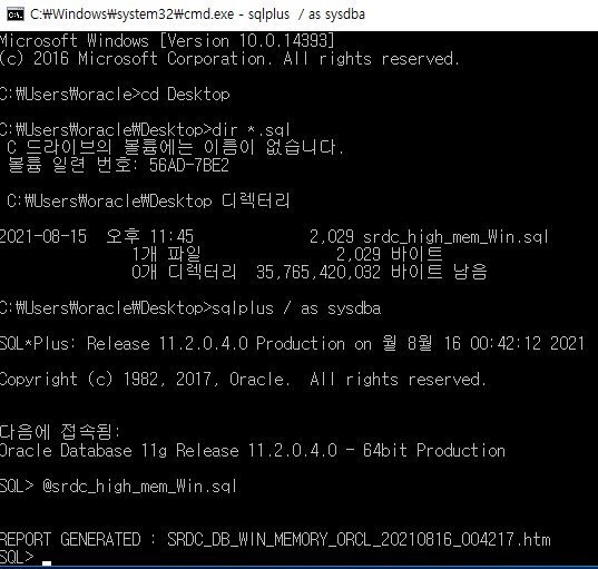 SRDC_DB_WIN_MEMORY_ORCL_20210816_004217.htm 파일이 생성됨