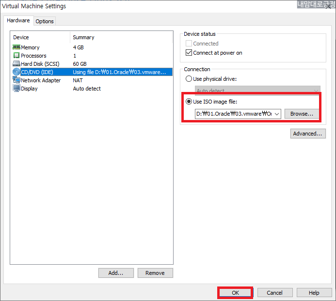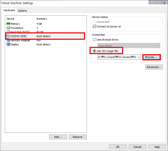 CD/DVD 에서 Browse 선택