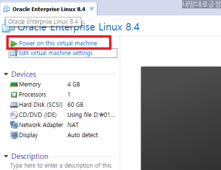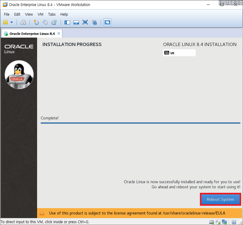 정상적으로 Oracle Linux 8.4 버전이 설치됨