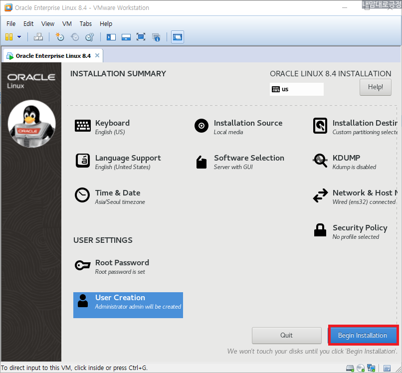 Begin Installation 선택