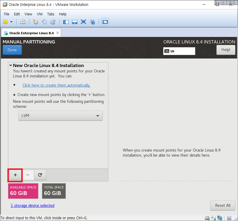 / 용량설정X 마운트 지점 추가(자동으로 나머지 모두 할당)