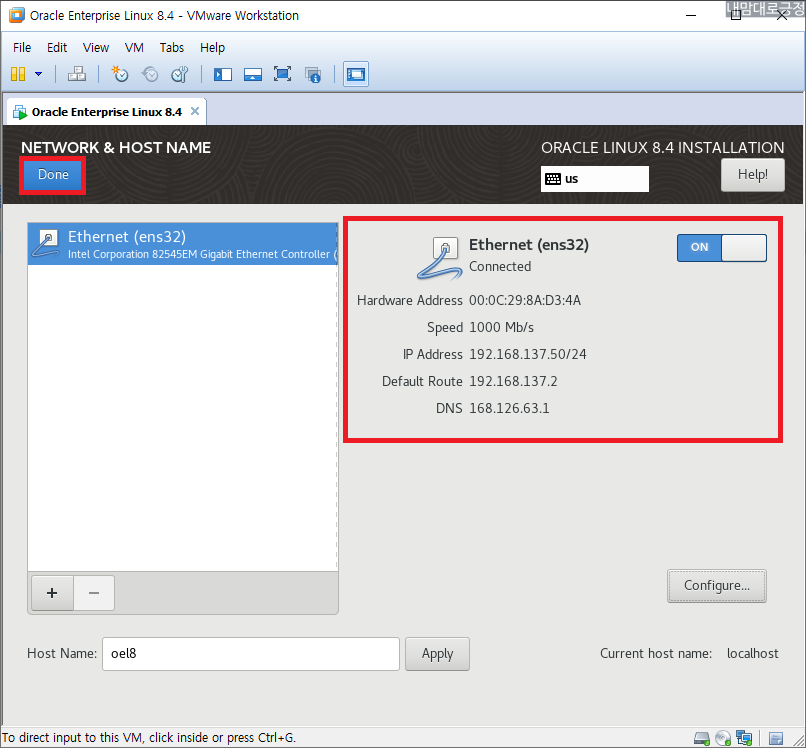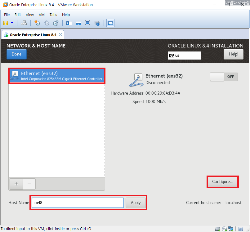 NETWORK & HOST NAME, Host Name 설정 후 Configure 선택