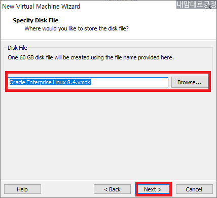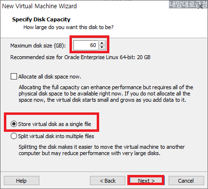 60, Store virtual disk as a single file 선택 이름 설정