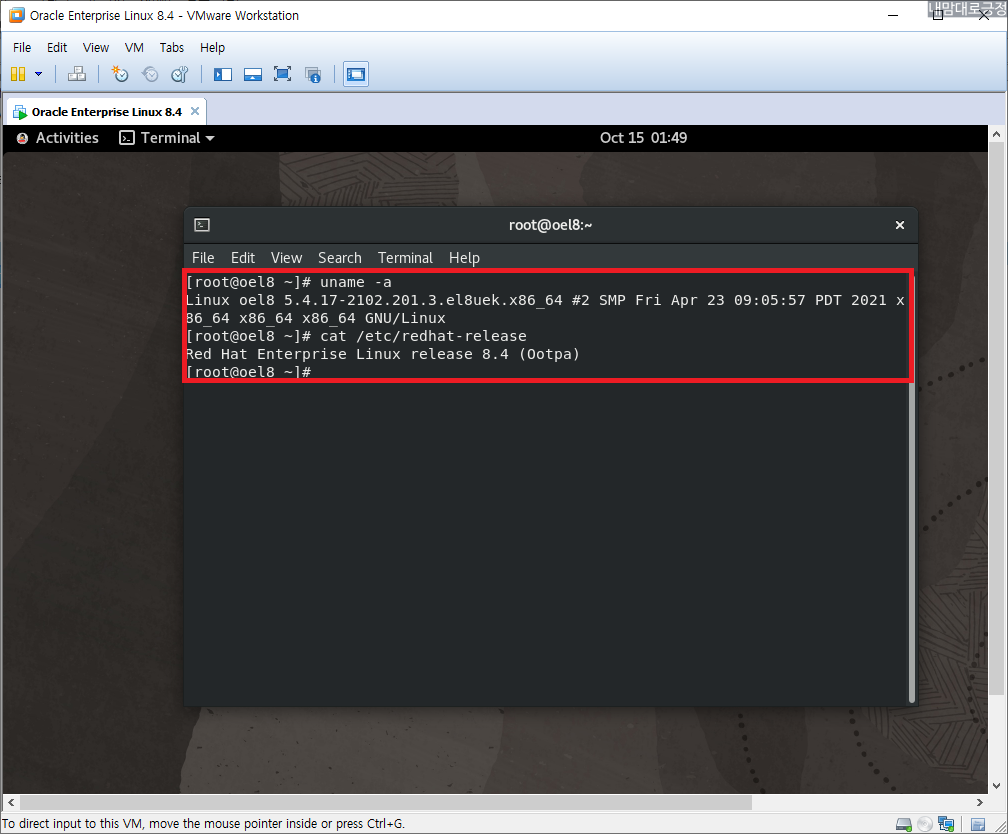 부팅 후 터미널 열어서 uname -a 와 cat /etc/redhat-release 확인