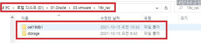 19c_rac 폴더에 아래와 같이 storage 라는 폴더도 생성해줌(공유 경로로 사용예정)