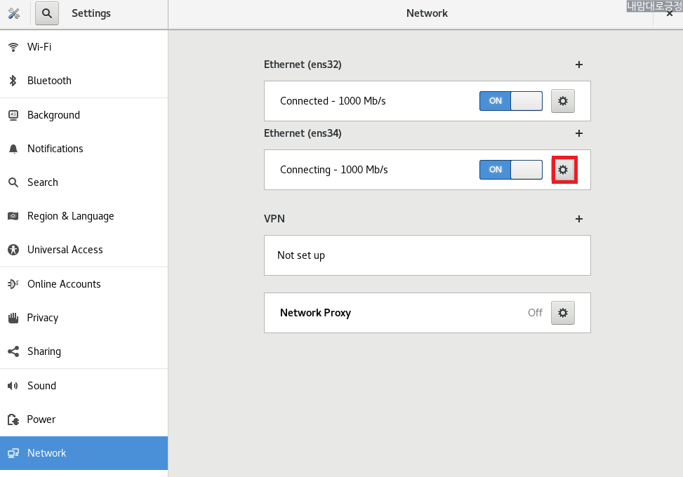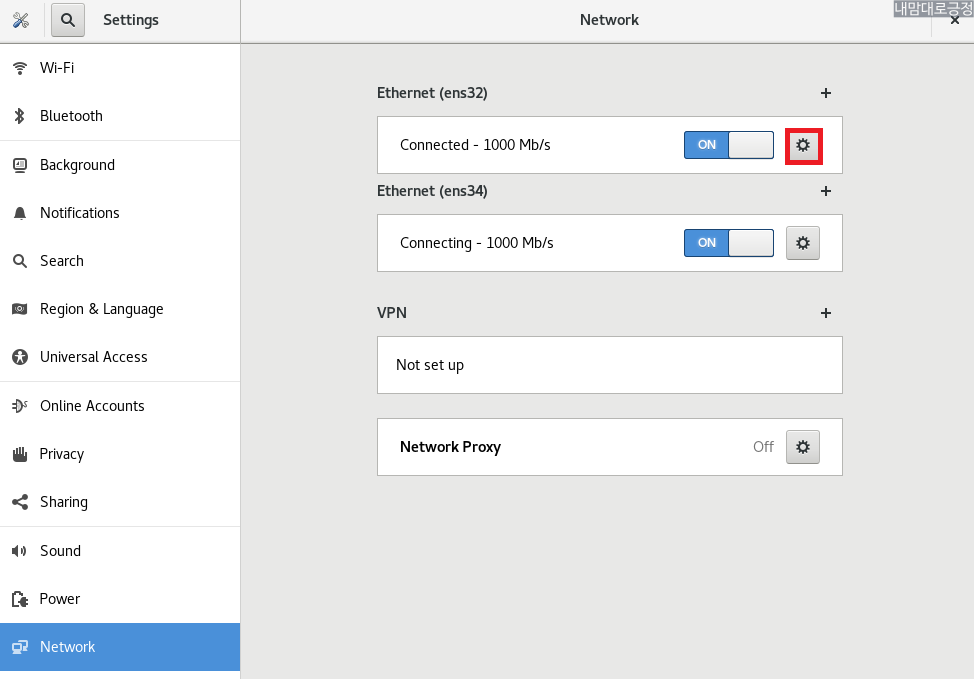 ens32의 설정버튼 선택