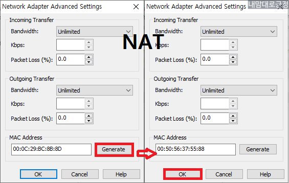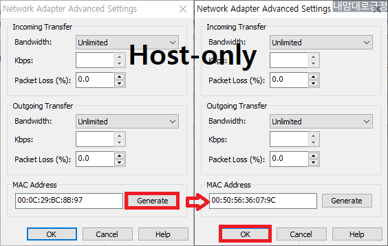 Generate 선택(MAC Address가 변경됨) 후 OK