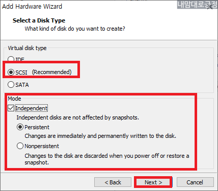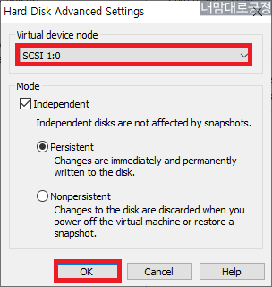SCSI 1:0 으로 선택 후 OK
