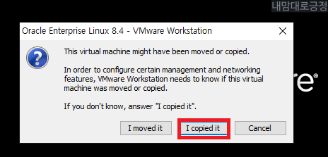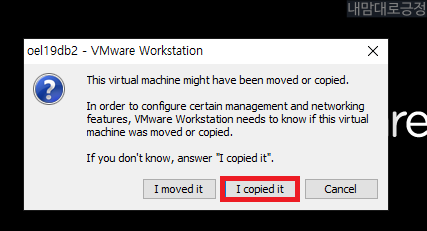 OS 기동, 기동 시 아래 메세지 발생 시 I copied it 선택