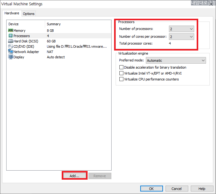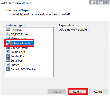 네트워크 어댑터 추가를 위해 Add