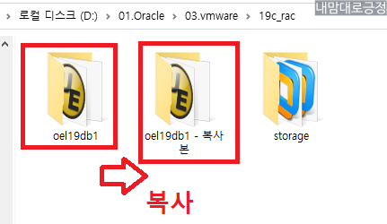 복사한 oel19db1(노드1) -복사본을 oel19db2(노드2)로 변경