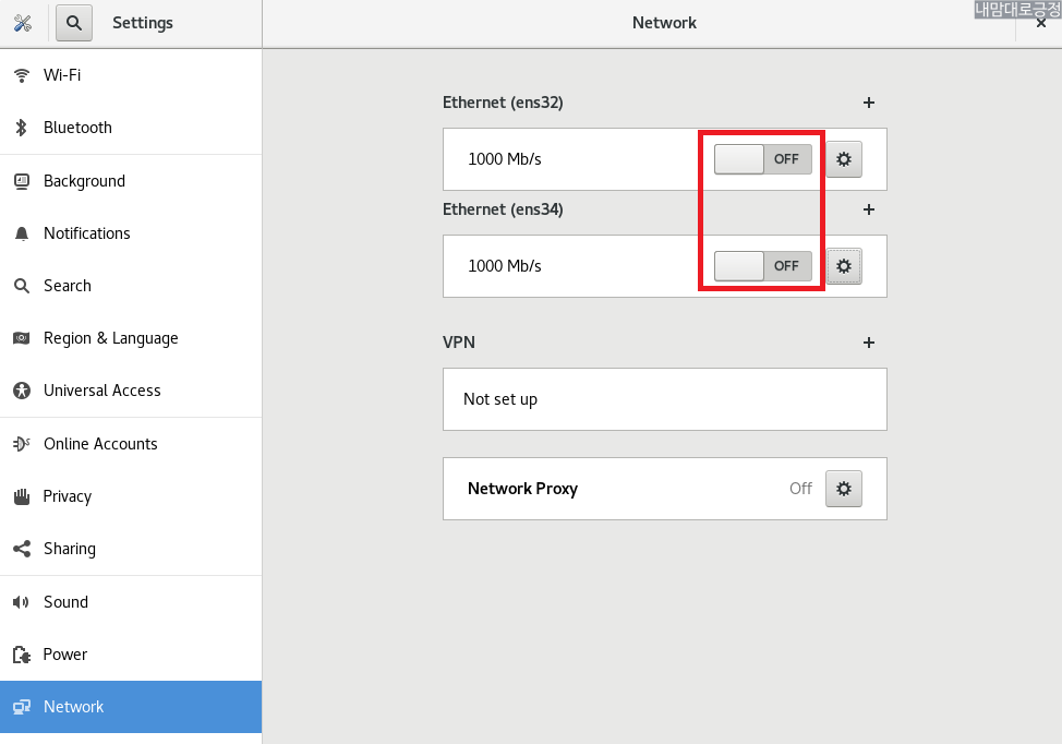 ens32, ens34 모두 OFF