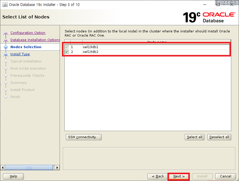 OS환경 : Oracle Linux 7.6 (64bit) DB 환경 : Oracle Database 19.3.0.0 방법 : Oracle Linux 7.6에 Oracle 19c RAC 설치 가이드_Part 1 OS 설치는 아래 게시물 참조 Oracle linux 7.6 설치 가이드(https://posi..