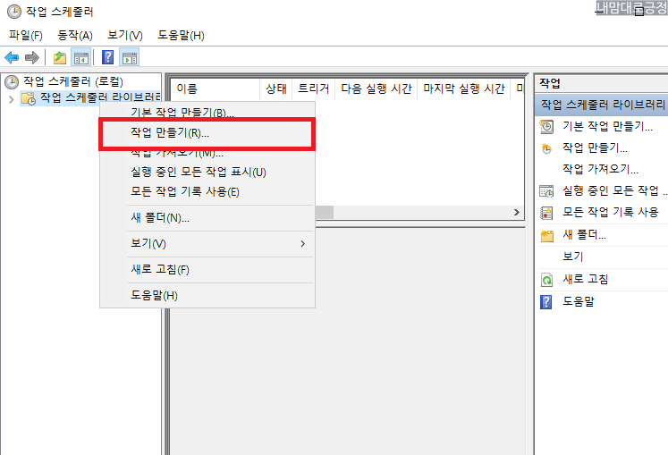 시작 - 검색 - 스케줄러 검색해서 작업 스케줄러 실행