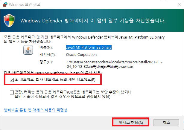 동의 후 다운로드(오라클 계정 로그인필요(무료가입가능))