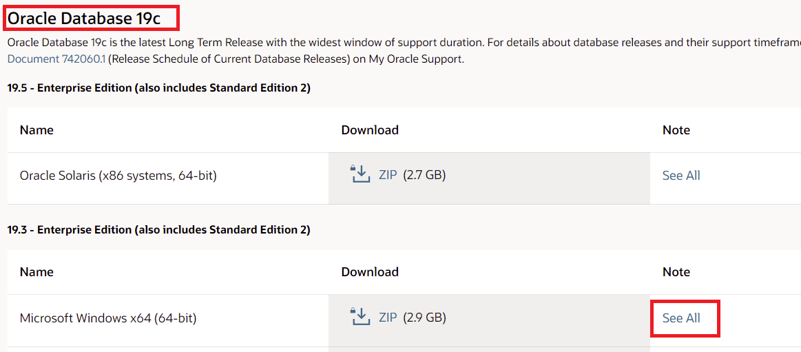 19c 버전탭에서 Microsoft Windows x64의 See All 선택