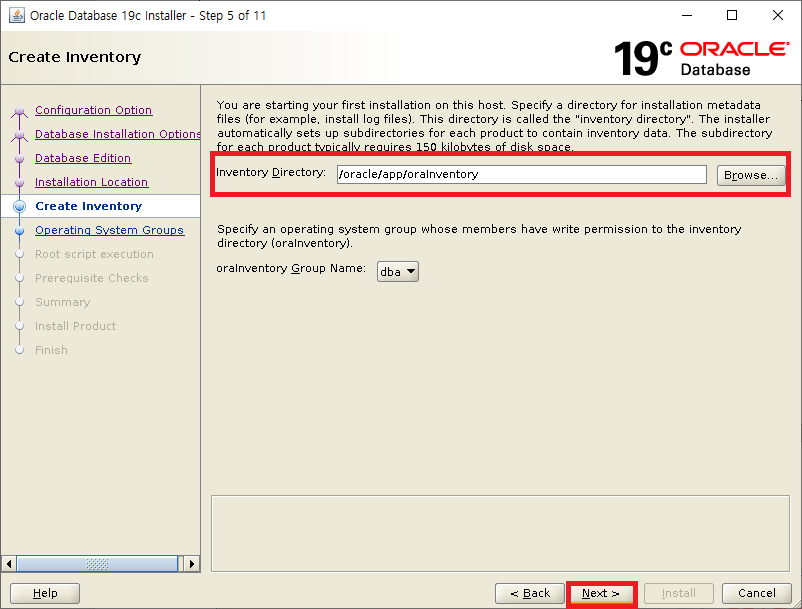 oraInventroy 경로 지정